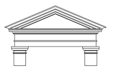 - Triangular pedimnent: Tympanum, triangular top of a façade, portico, span.